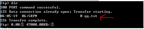 명령어dir을통해 qq.txt가 존재함을 확인할 수 있다.