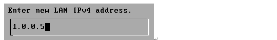 2번(set LAN IP)을 선택하여서 ip(1.0.0.5), subnetmask(255.255.255.0), gateway(1.0.0.254), DNS(1.0.0.1)주소를 각각 그림에 맞는 ip를 대입하여 주었다. 그 후에 꺼주었다.