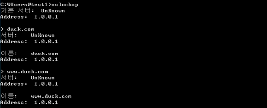 Win 7에서 무사히 nslookup(도메인 조회)이 된다.