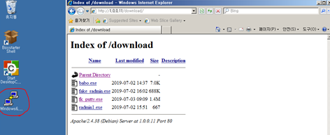Kali의 아파치 웹서버를 이용해여 공격대상 시스템에서 파일 다운로드한다.