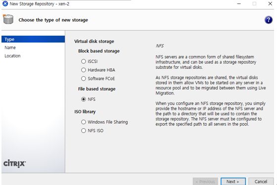 STO파일은 disk storage NFS를 선택한다.