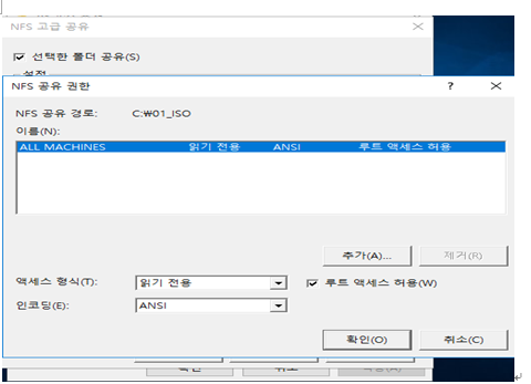 ISO파일은 읽어만 오면 되기 떄문에 권한을 읽기로 준다. (루트 액세스 허용)