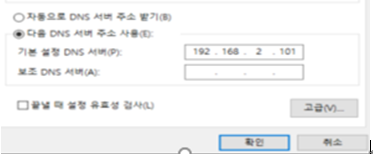 W10은 자동할당이기 때문에 dns값만 ad쪽으로 설정해준다.
