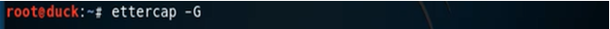 Ettercap을 이용하여서 공격하겠다. 그래서 칼리 리눅스에서 Ettercap –G를 실행!