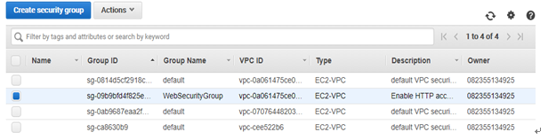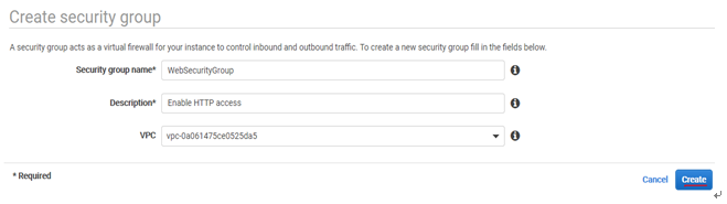 이름은 WebSecurityGroup 설명은 Enable HTTP access입력하고 생성하겠다.
