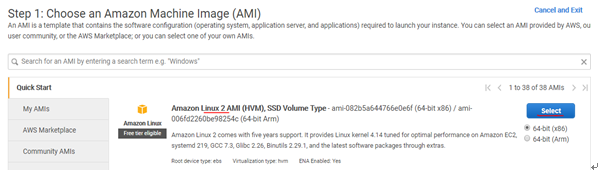 생성할 인스턴스의 이미지를 선택한다. 리눅스 기반의 인스턴스를 생성할 것이므로 선택!