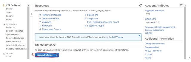 EC2 인스턴스 생성을 위해 EC2 Sevice로 이동하고 Lanch Instance를 클릭한다.