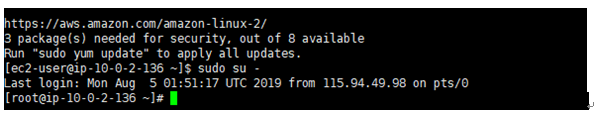 무사히 SSH접속이 가능하고 sudo su – 로 root에 접근도 가능하다.