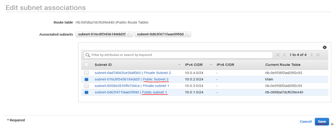 Private Subnet 1 및 Private Subnet 2를 선택하고 save를 선택한다.