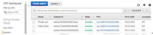 왼쪽의 가용 영역이 완성된다. 이번에는 Wizard가 아닌 클릭을 이용해서 subnet를 구성해보겠다. 왼쪽 창에서 subnets를 클릭한 뒤 create subnet을 클릭한다.