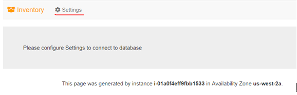 이제 어플리케이션이 작동하는지 테스트해야 한다. EC2 인스턴스를 클릭하여 Description탭에서 ipv4 공인 ip를 복사하여 웹 페이지에 입력한다. 웹 어플리케이션이 나타나야 하는데 애플리케이션이 아직 데이터베이스에 연결되지 않아 표시되는 정보가 거의 없다.연결하기 위해 Settings를 클릭한다.