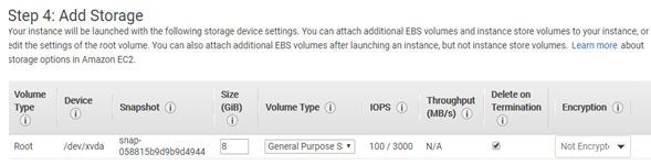 스토리지를 추가한다. 디스크 볼륨을 추가하고 그 크기와 성능을 구성할 수 있다.