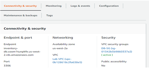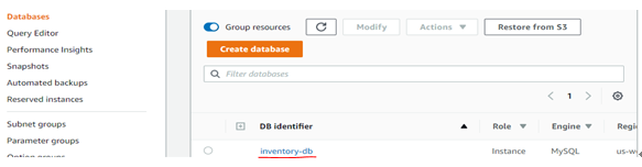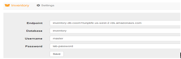 인벤토리 정보는 앞에서 생성한 Amazon RDS MYSQL 데이터베이스에 저장된다. 따라서 애플리케이션 서버에 장애가 발생해도 데이터가 손실되지 않는다. 그리고 여러 애플리케이션 서버에 동일한 데이터에 엑세스할 수 있다. 데이터베이스에 직접 접근하지 않고 앱서버를 통해서 데이터베이스에 접근하였다.