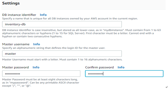 Specify DB detail 페이지에서 다음의 사항들을 구성한다.