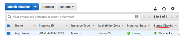 인스턴스 상태가 running으로 표시되고 Status Checks에 2/2가 보여야 무사히 생성!