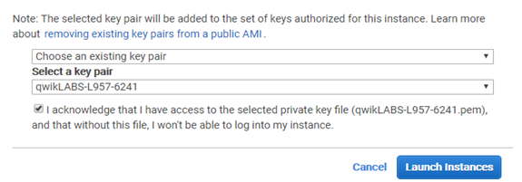 키 페어는 기존 키 페어를 선택하고 인스턴스를 시작한다.