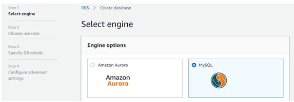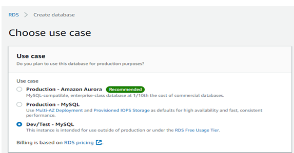 Choose use case 페이지에서 Dev/Test-MYSQL을 선택한다.
