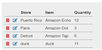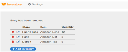 애플리케이션이 데이터베이스에 연결되어 일부 초기 데이터와 표시 정보를 불러온다. 웹 어플리케이션을 사용하여 인벤토리 정보를 추가 편집 및 삭제 한다.