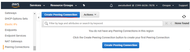 왼쪽 창에서 Peering Connections를 클릭한 후 피어링 연결을 생성한다.