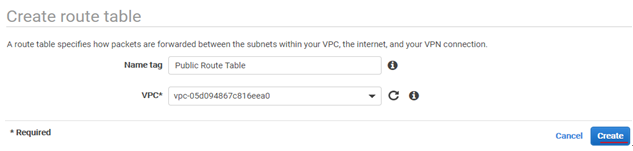 이제 퍼블릿 트래픽을 인터넷 게이트웨이로 전송할 새로운 라우팅 테이블을 생성하겠다.