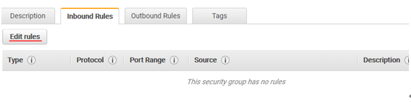 인바운드 규칙은 인스턴스에 도달하는 것이 허용되는 트래픽을 결정한다. 인터넷 어디서나 나오는 HTTP 트래픽을 허용하도록 구성한다. 규칙을 설정하고 저장한다.
