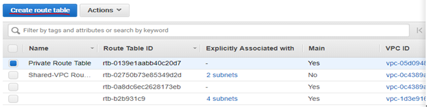 왼쪽 탐색 창에서 Route Tables를 클릭한 후 VPC ID열에 Lab VPC라고 써있는 열의 라우팅 테이블을 선택한다.