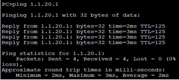 Show ip route을 통해서 라우팅 테이블을 확인하였고, 각각의 pc로 ping이 가능한 것을 확인하였다.