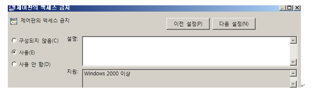 제어판 엑세스 금지라는 부분을 사용을 체크하고 편집을 마친다.