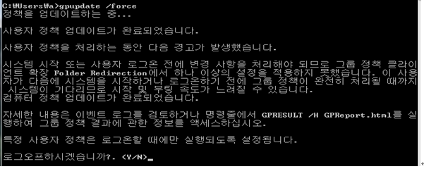 testpc에서 각각 gpupdate /force를 실행해주고 로그오프 한다.