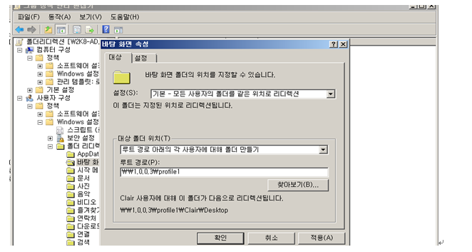 AD에서는 계정의 속성에 프로필을 만든 폴더의 경로를 설정해주었다.